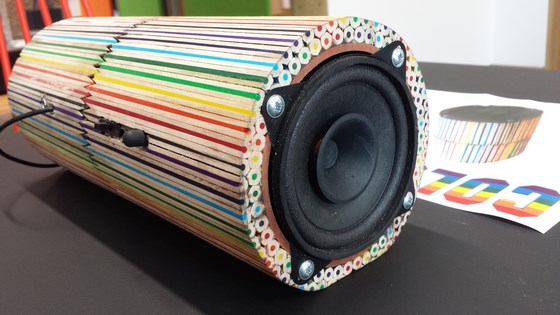We visited Merchant Taylors’ School and saw some amplifiers designed by some of the students using our High Power Amplifier Kits. We were very impressed with the range of upcycled materials that were used to design the case of the amplifiers. The students also designed the packaging for their amplifier using photos and designs of their project.