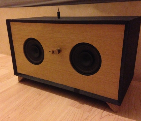James Stapling sent us these images of his oak high powered amplifier case. The cable tidies away into the box when not in use and it has a nice little oak volume control.