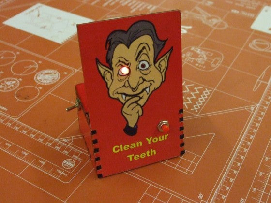 The electronics are stored in a box at the back of the design.