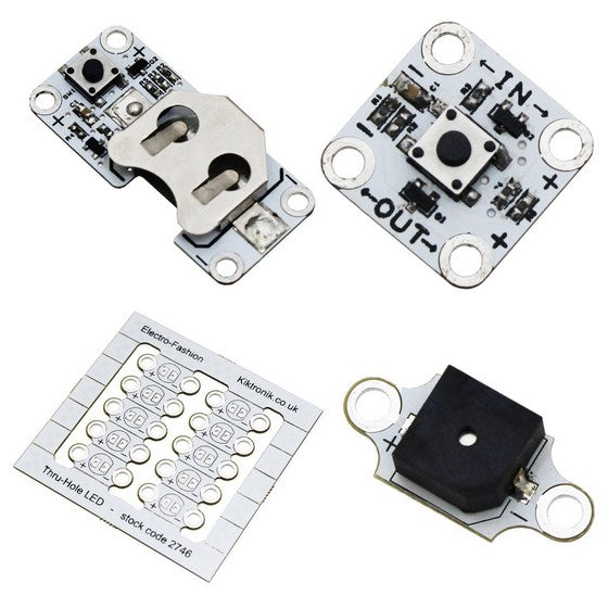 This week, we have gone mad by adding a large number of Electro-Fashion boards so you can have even more options when designing your e-textile projects! We’ve added some new products we know you have been clamouring for including the long-awaited Electro-Fashion, Latching Switch (also available with a built-in Coin Cell Holder), Sewable 5mm LED Holders, a new Sewable Buzzer and an E-textiles Battery.