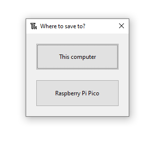 Save the code. If your Pico is connected then Thonny will offer the option of saving it to the Pico or to your local computer.