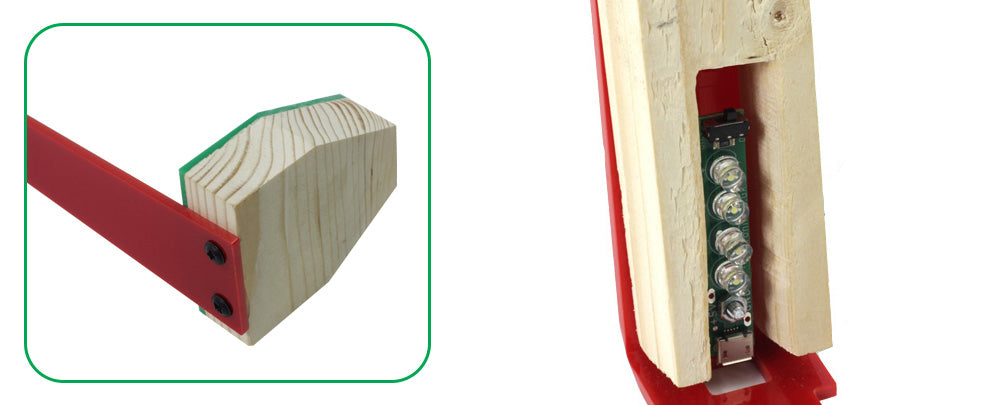 Screw the USB LED Strip to the wood, using the spacer to make sure the usb connection is accessible through the hole in the acrylic. Secure the screw using the small nut to keep the light in place.