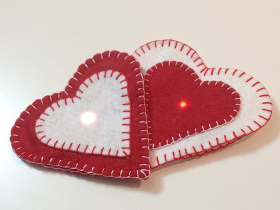 Get in the mood for Valentine’s Day with these hearts that light up when they touch.