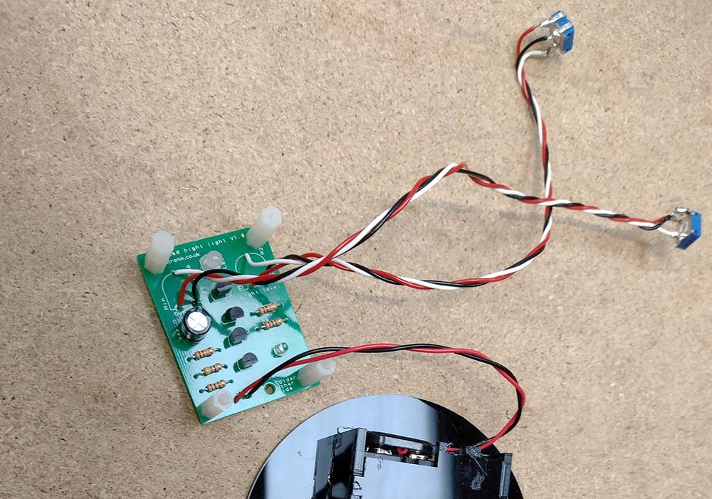 Glue the PCB to the lid with your LED and Light Sensor in place in the two holes. Use your plastic glue between the spacers and lid.