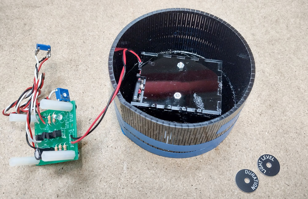 Put together the Kit, leaving the LED and light sensor on long legs, and attach the potentiometers using extra wire to extend them off the board.