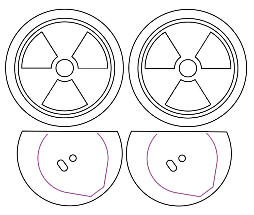 Firstly, cut the frosted lens replacements out and insert them. We have used Polar White Frosted Perspex® which diffuses all the light colours well, however you could try any colour. Some colours may not diffuse certain light colours well. Your particular goggles may require a different diameter lens, so you should double check before cutting new lenses. You can also choose a different design to engrave on the lens. We have engraved the design and then kiss-cut around the edge of it to make it pop. The DXF also contains the mounting panels for the board which will contain the PCB and electronics. Cut the mounting and wire holes through fully, kiss-cut the board outline and cut all the way through the outside.