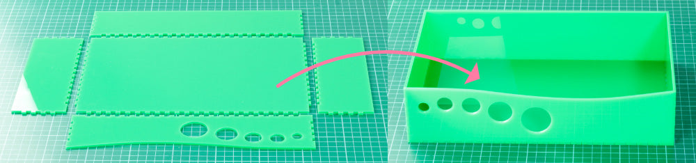 Laser-cut the drawer. Using superglue sparingly, attach the sides to the base of the drawer.