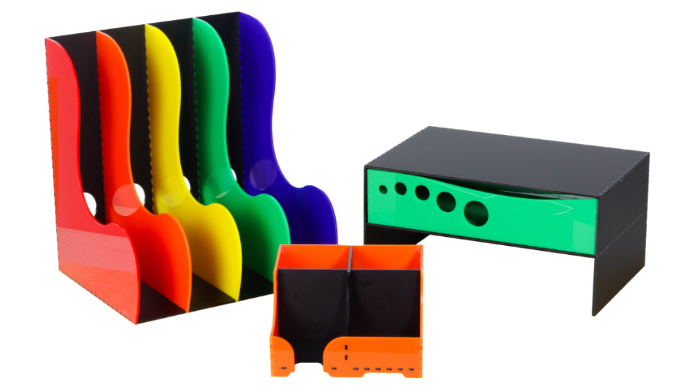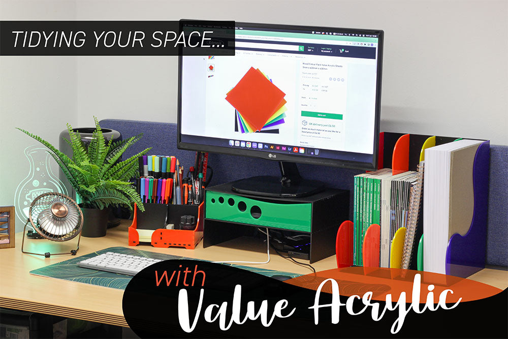 Hello again everyone! This time around, Emma brings you a set of makes that will brighten your desk space and help you keep things orderly. Follow along below with three extremely simple laser cut makes, using our awesomely budget-friendly Cheap Acrylic sheets!