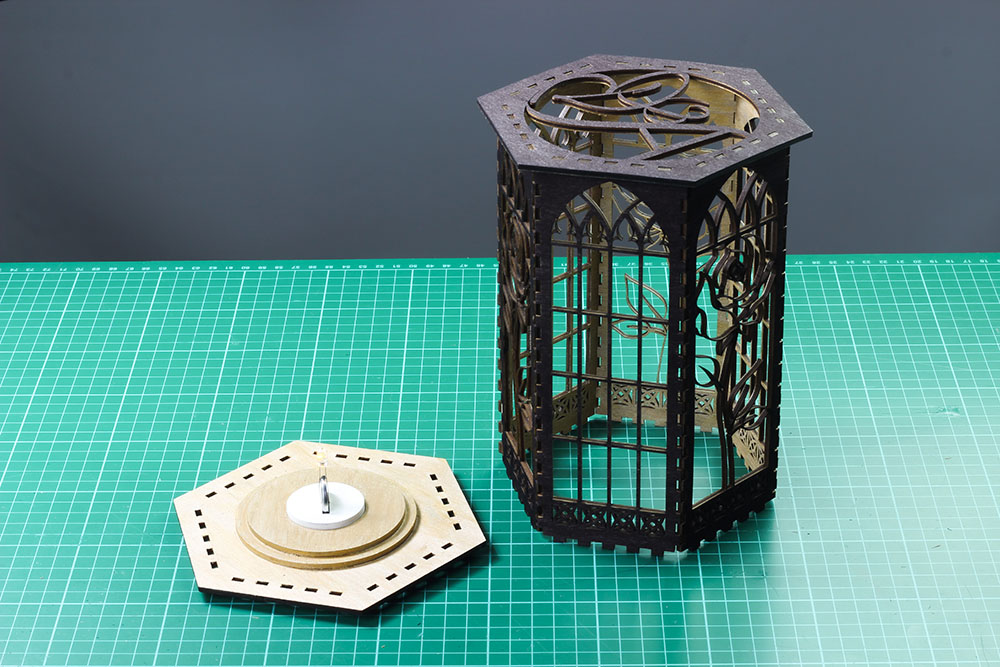 Attach the sides to the bottom, with the tealight sitting in the centre of the candle holder. You may need to gently use percussive force to push the finger joints in, such as a very small and light rubber hammer.