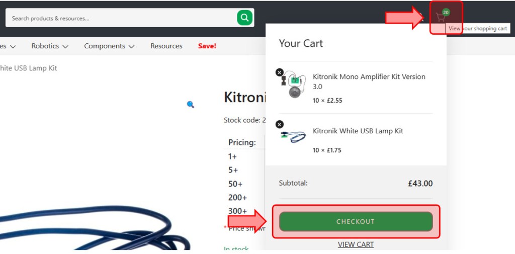 When you have everything you require in your basket click Checkout.