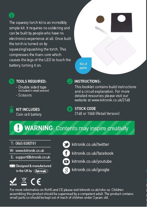 The squeezy torch kit is an incredibly simple kit. It requires