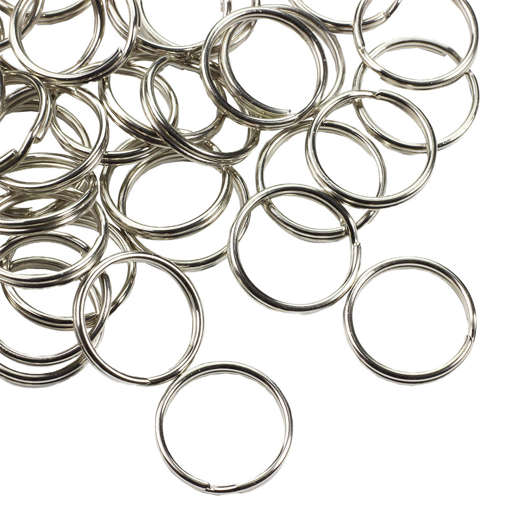 These standard split keyring attachments are made from carbon spring steel and are supplied in a pack of 50. They have an inside diameter of 17.2mm, an outside diameter of 20mm, and a ring thickness of 2.6mm.