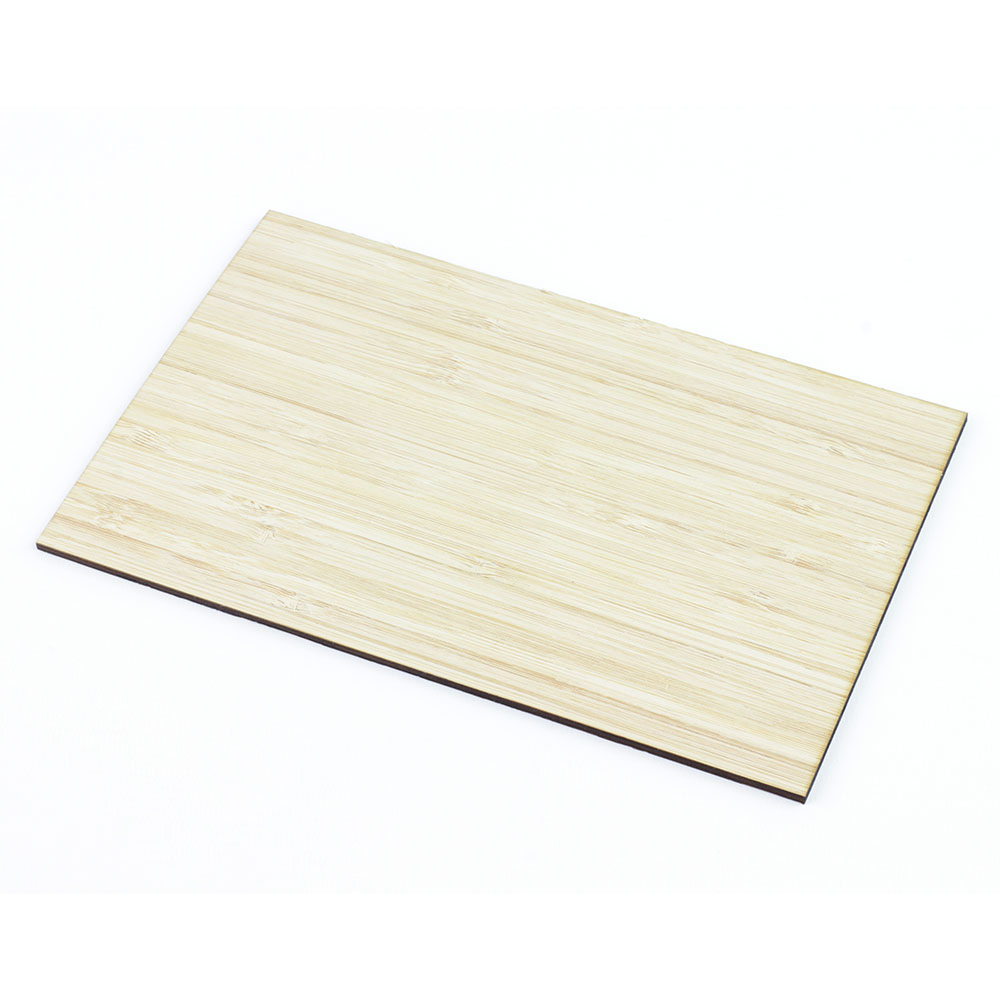 These 3mm 6 ply Side Pressed Caramel bamboo veneered sheets measure 600mm x 400mm. Bamboo is a versatile product and these Side Pressed sheets can be cut by hand or on the laser cutter and offer a great alternative to traditional wood veneers. Due to the 6 ply construction of these bamboo sheets, they exhibit much better mechanical properties than other types of bamboo sheet and they are also resistant to warping.