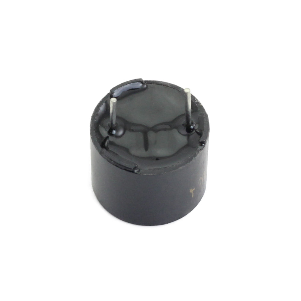 Miniature electromagnetic buzzer with internal oscillator drive circuit for direct PCB mounting. Potted flux-proof base and tear off top label permit board cleaning.