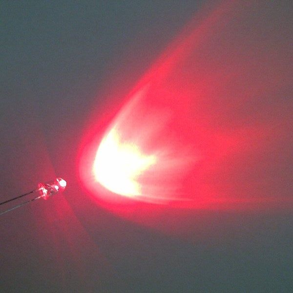 Red 5mm Mega bright Water Clear LED with a viewing angle of 30 degrees. Luminous intensity 9500mCd.