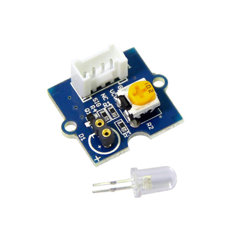 The Grove compatible White LED has been made with adjustment in mind. The board features an interface slot for the LED, which allows for the bending the LEDs legs to an angle that suits your project.