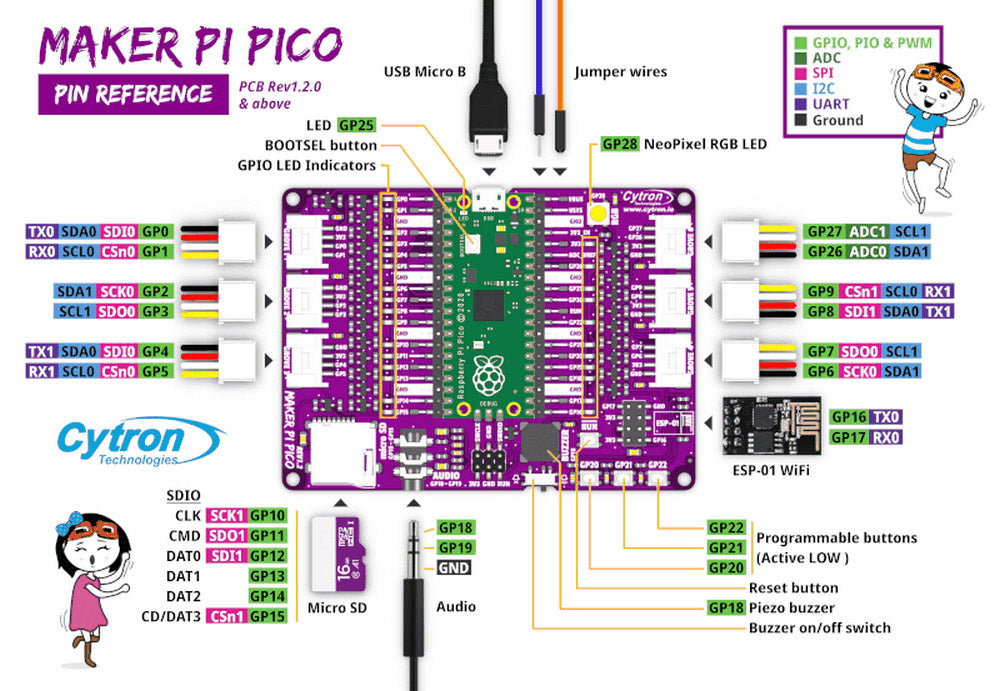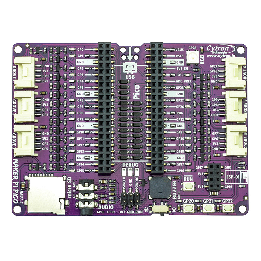 The Cytron Maker Pi Pico Base is an all-in-one accessory for the Raspberry Pi Pico, offering a feature-rich learning environment for beginners and beyond!