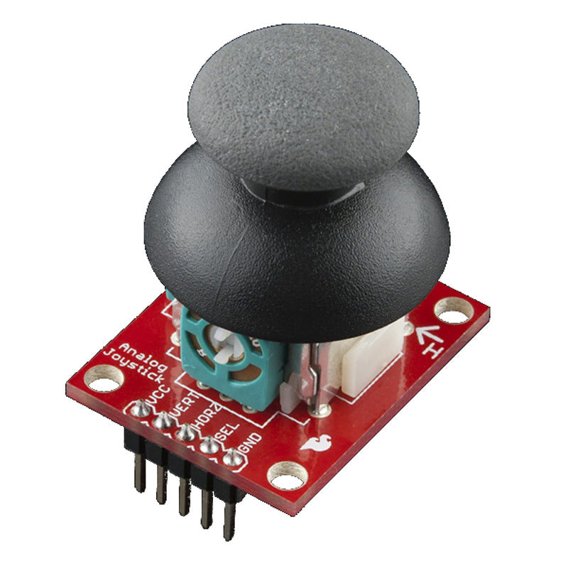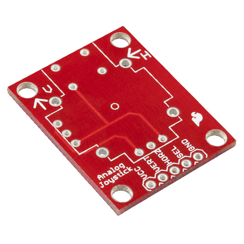 This is the breakout board for the thumb joystick. Pins are broken out to a 0.1″ header and includes 4 mounting holes in the corners.