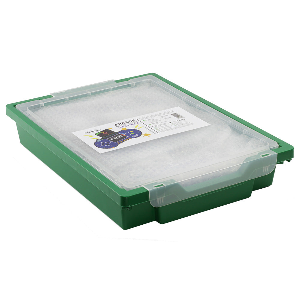 Kitronik ARCADE for BBC micro:bit and MakeCode Arcade offers the perfect platform for teaching in an engaging way. Included with the class pack are; 10 Kitronik ARCADE for BBC micro:bit gamepads, 10 USB noodle cables, a pack of 40 batteries, and is packaged in a durable and reusable Gratnells lidded tray. Each Arcade gamer comes pre fitted with a laser cut protective case to protect the gamer from the rigours of day-to-day use in the classroom. Additionally, there are 10 x drawstring microfibre soft cases to for protection against abrasion and scratches in storage. This pack is not supplied with micro:bits, the BBC micro:bit can be obtained separately here.